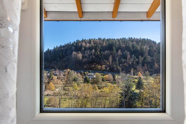 The holiday apartment is located in a detached single-family house or apartment building built in 1964, renovated in 2022, and furnished in the typical local style. The property is situated on the outskirts of the village. The domicile is also popular due to the view from the property into the valley and the quiet and sunny hillside location at the edge of the forest. Available for shared use are: sunbathing lawn, sunshade, sun lounger, barbecue facilities, and garden furniture.