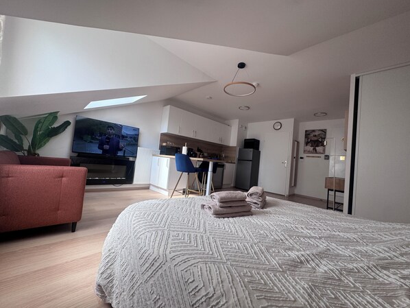 Todos os quartos em ☀ El Cubanito | Studio 30 m² | Aéroport CDG – Paris ❤ oferecem vantagens como áreas para refeições separadas, além de comodidades como acesso à internet.