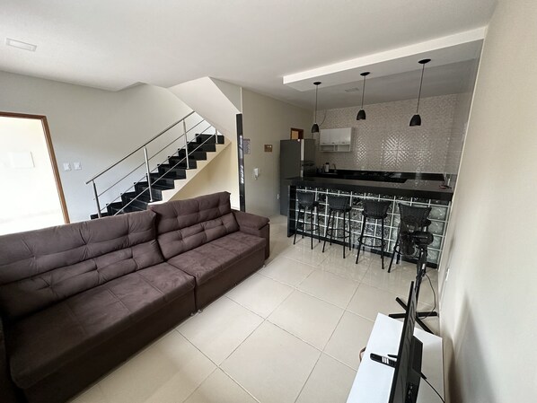 Esta casa de temporada em Anchieta dispõe de cozinha e sacada
