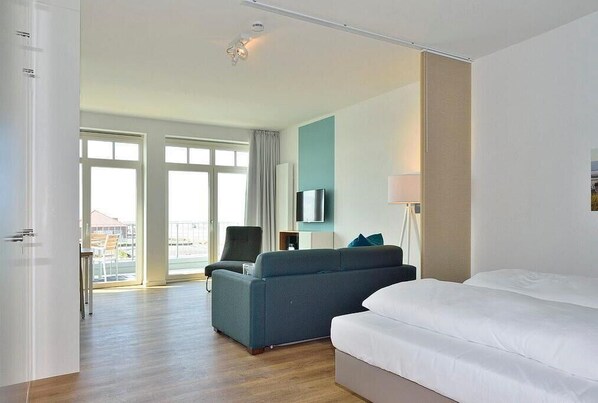 Modernes Apartment an der See mit Westbalkon, Meerblick und Saunabereich im Haus
