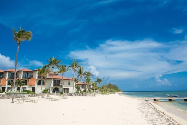 Thr condo had a great view of the ocean and beach from our front patio. It was well appointed and super convenient to the beach and pool, but far enough away to be quiet. We stayed with friends across the way at #6 which was perfect for shared dinners. The beach was private with the incredible dock to sit on and watch the turtles and sunset. Picture perfect. We cooked on the public grills which were a great amenity as well. A 10 minute to 7 mile beach, it was quick to the main area, but remote enough for your own experience. It is a remote feeling and nothing to walk to which is why we enjoyed it. George our on-site host was the best! Available, helpful and really made a difference for our stay. Specific to Grand Cayman, do bring the bug spray for the night times no matter where you are on the island. Again - great space and would come back again.