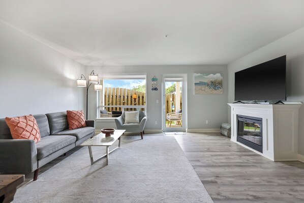The master bedroom has a king bed and private bathroom while the guest bedroom has a bunk bed with two full mattresses, perfect for kids and young adults. Many families choose this 1st floor vacation home year after year for its easy access to the beach, clubhouse, and parking because getting the kids and all the associated gear in and out is such a breeze. This vacation home is also conveniently close to the clubhouse where the hottub and pool are located. The large jetted tub in the master bathroom is great for a long soak after a brisk walk on the beach or brave dip in the ocean.