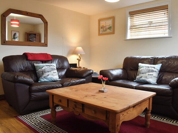 Bathroom: Bath With Shower Over, Toilet. Gas central heating, electricity, bed linen, towels and Wi-Fi included. Travel cot available on request. Highchair.. Courtyard with sitting-out area and garden furniture. On road parking; unloading at the door. No smoking.. This lovely lower ground floor apartment is tastefully decorated and well-equipped, and situated close to all of Whitby’s amenities. There are six steps down into the welcoming hallway, a spacious kitchen/dining room with unique brick arch work makes a lovely social space to eat, chat and plan your holiday activities. The cosy living room features a large stone and slate fireplace with comfy leather sofas and entertainment systems for your enjoyment. With a super kingsize master bedroom and a second room with a double bed with single bunk over, this is a fantastic apartment for a small family or couple and is also pet friendly.
