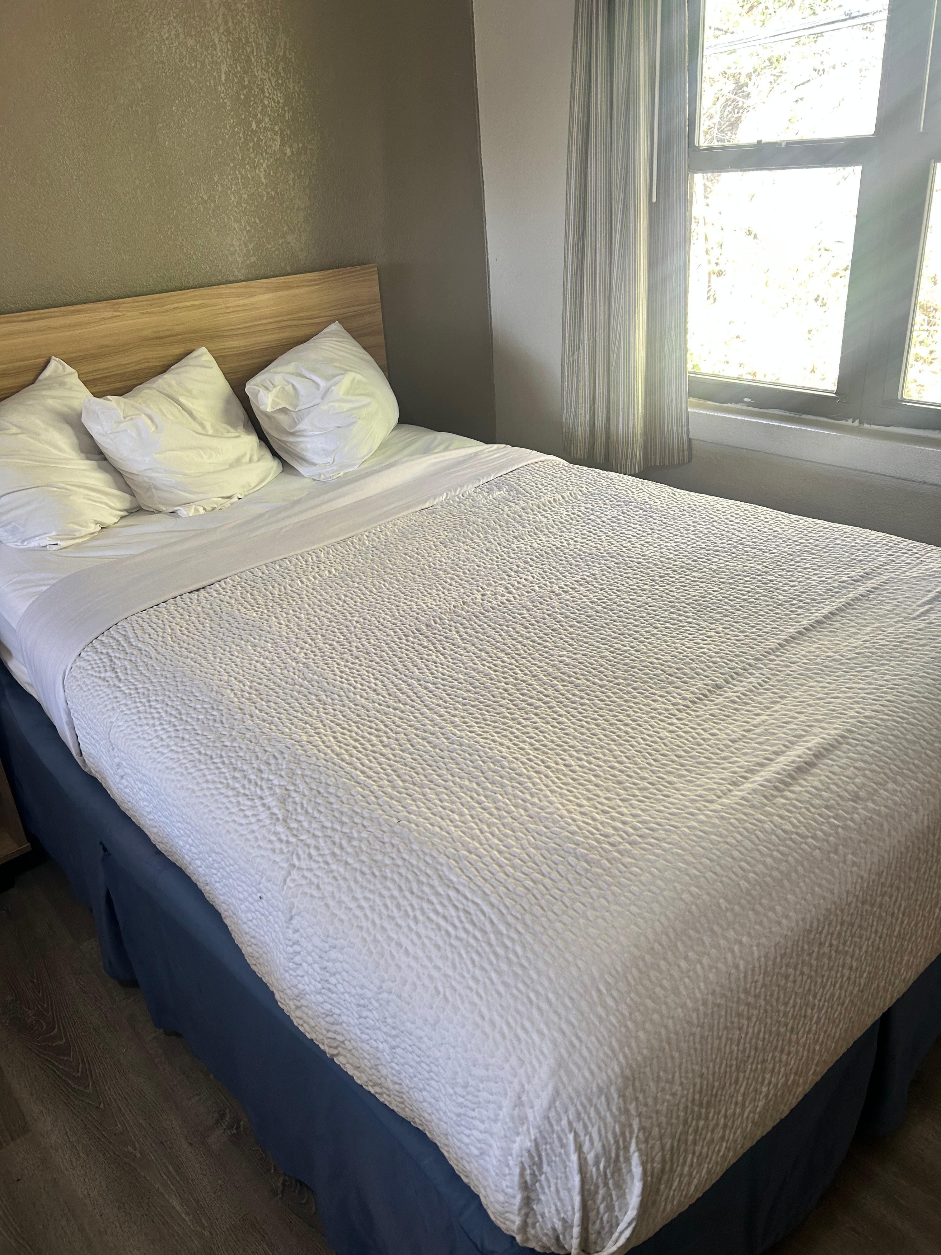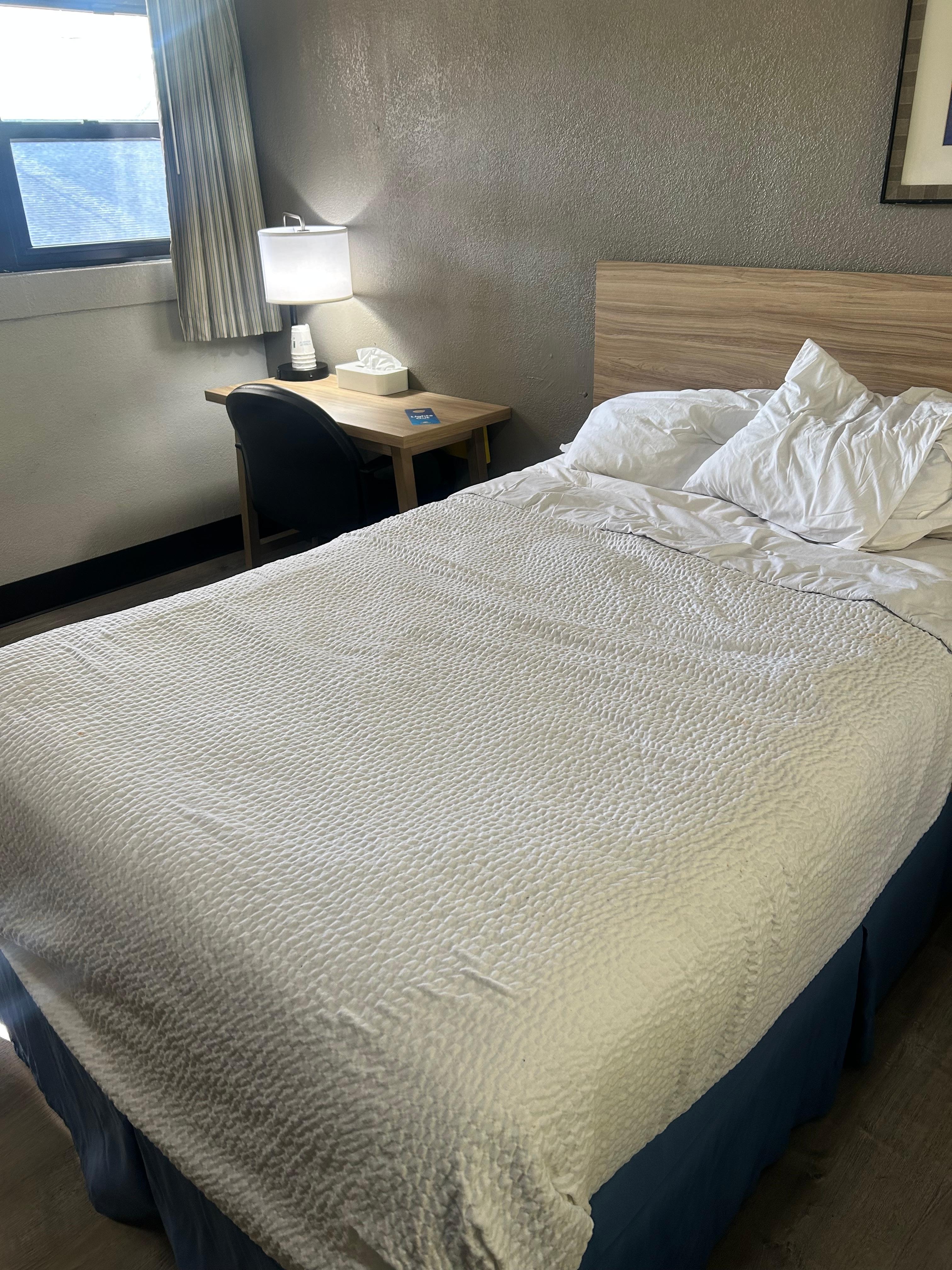 The room was clean , I had originally booked a king smoking room when I arrived late for check in about 30 min. The room hadn’t been checked out of. I told them I would need a smoking room of some sort. I was given a 2 bed room. The remote had dead battery’s , it an open concept for building detail so you will have to go outside to go to the vending machine or main office. The walls are thin so no loud anything if you want to be respectful to other. Other wise the visit wasn’t bad and I completely what I needed to do . So 6/10.