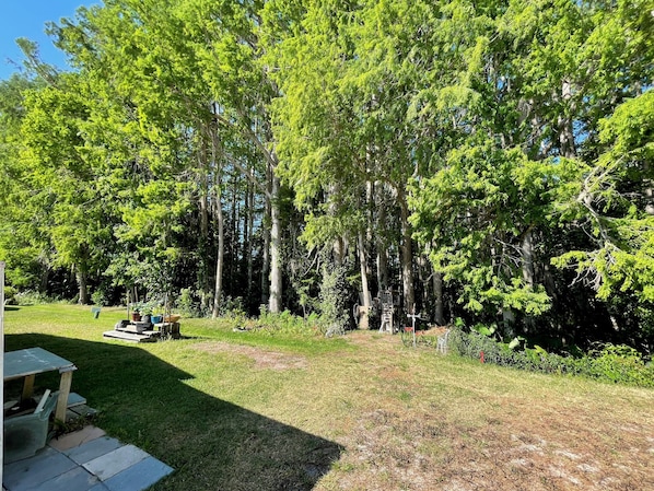 Relax in style—lanai, golf cart & tranquil wooded views included!
