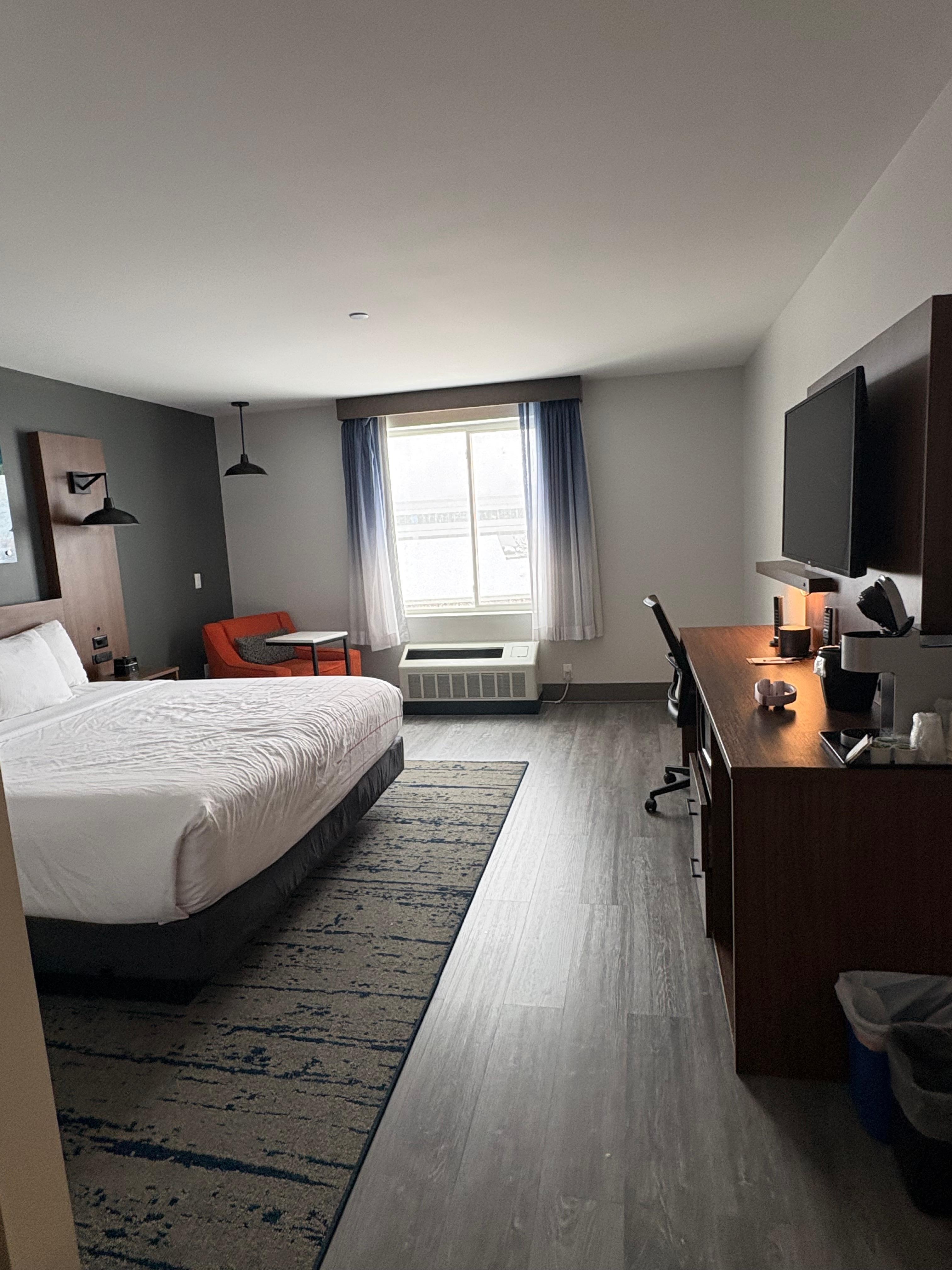 Room was not completely clean, meaning floor edges still had dirt, dust and food crumbs from previous guests. Not sure what was going on in the room above me but it constantly sounds like moving furniture, stomping like elephants and just loud. Never had that anywhere else I’ve stayed.