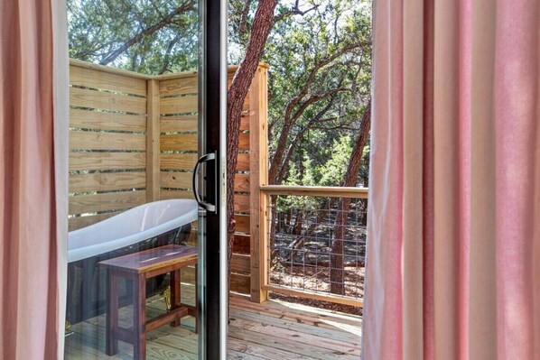 Pink house with outdoor tub under Wimberley stars