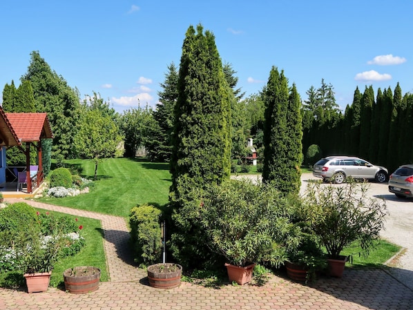 type of building: bungalow. size of property: 3000m². Owner lives on the property. Welcome to our cosy holiday flat in Zalakaros, the perfect retreat for those seeking relaxation while still enjoying the amenities of a charming spa town. Designed for up to 5 people, this flat house offers a welcoming atmosphere in the middle of a quiet, green neighbourhood. Enjoy the peaceful surroundings and the proximity to the famous thermal and adventure pool while you linger in our lovingly tended garden.