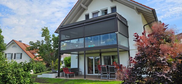 Relax on your private covered terrace or enjoy the peaceful surroundings in the shared garden.